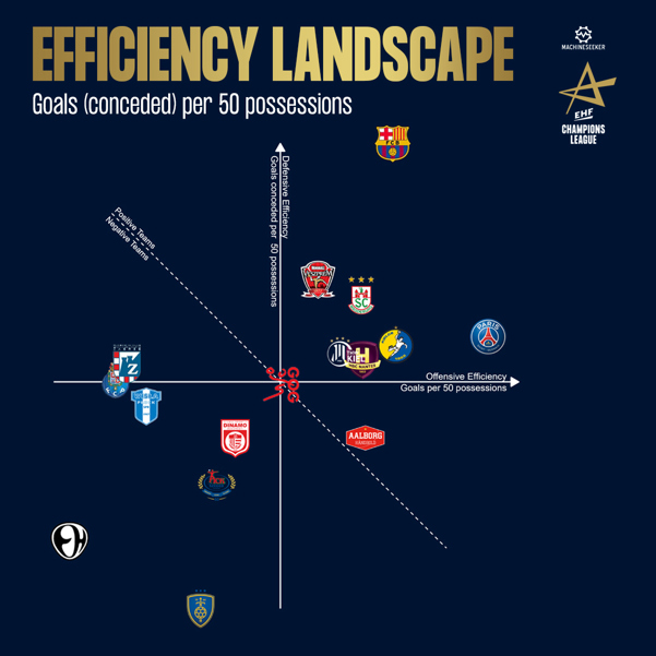This style of play, on the other hand, is always more prone to turnovers, but at 8.1 per 50 possessions (rank 8) they are still better than Plock's 9.7 (rank 14). On the shooting percentage Plock’s difference to Magdeburg is even bigger with 60.4 per cent (rank 13).