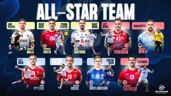 Ahead of the Men’s EHF EURO 2026 final on Sunday, the tournament’s All-star Team has been chosen after thousands of fan votes, input from an expert panel and confirmation of the EHF.